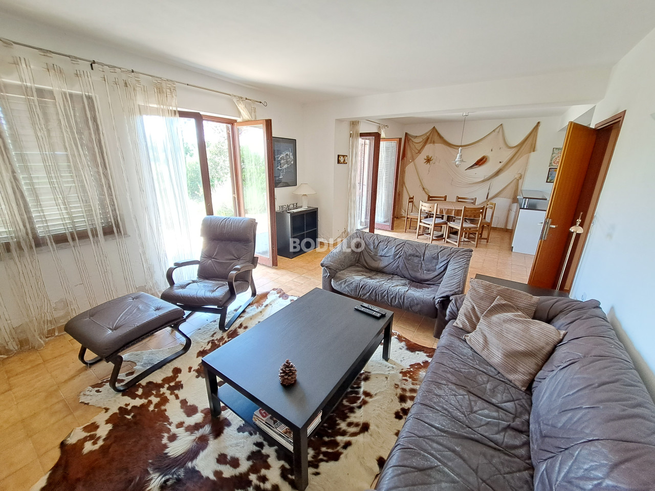 Na otoku Pašmanu u mjestu Ždrelac nalazi se ova vikendica površine 198 m2. Tlocrt nekretnine omogućava podjelu vikendice u dva apartmana.U prizemlju se nalazi dnevni boravak, blagavaonica, kuhinja, soba, hodnik, kupaonica i wc, kao i terasa, a na katu s kojim je ova nekretnina povezana unutarnjim stenicama nalaze se tri sobe, hodnik te kupaonica i wc, stepenice i terasa. Vikendica je udaljena idealnih 150 m od mora te ima pogled na more s prvog kata. Iako je u ovu vikendicu potrebno ulaganje, ona s druge strane pruža velik raspon mogućnosti uređenja ukoliko želite realizirati svoje vizije. Vikendicu također krasi zeleno dvorište površine 565m2 koje je pogodno za ugradnju bazena ili za uređenje Vaše idealne vrtne oaze.